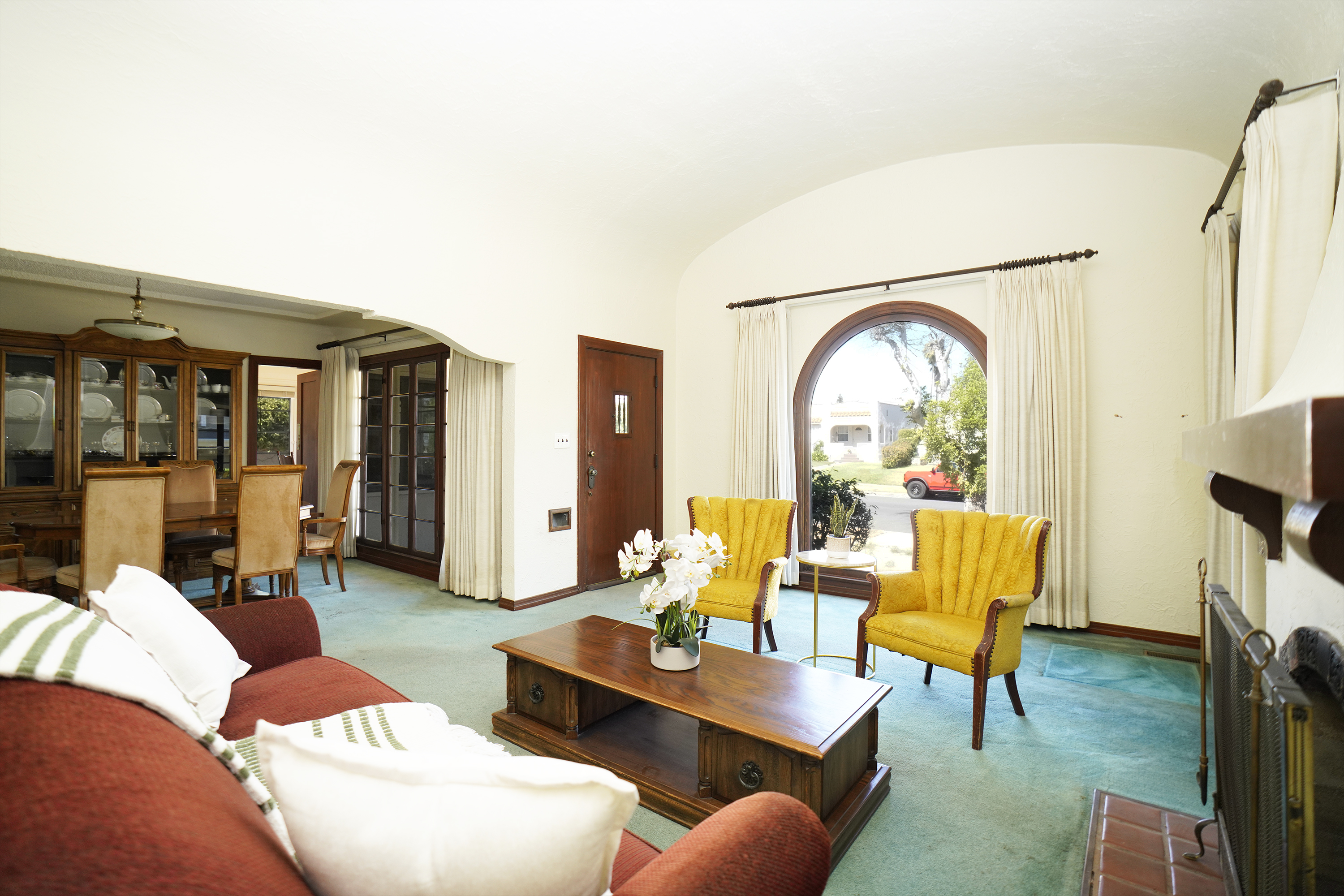 First time on the market in 50 years, this charming 1928 Spanish Revival is full of original character and timeless appeal. Architectural details throughout the home reflect the beauty of Alhambra, Spain from which the city is named after. Inside, you will find three spacious bedrooms and one full bathroom. The living room is a showstopper with high barrel vaulted ceilings, a classic masonry fireplace, and a large arched front window that fills the space with natural light. The adjacent dining room features an alcove ceiling and original floor-to-ceiling wood casement windows that open onto the front porch.